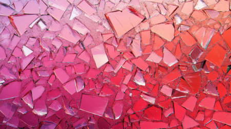 This artwork features a vibrant array of shattered glass pieces in varying shades of pink, red, and purple. Perfect for modern design projects.