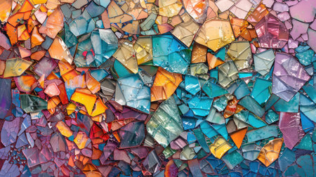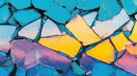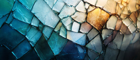 Abstract background of cracked glass texture with vibrant shards and patterns