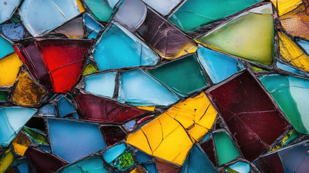 A stunning array of colorful glass fragments creates a vibrant mosaic, combining various shades and reflections for a captivating artistic display.