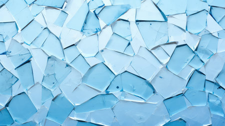 A striking close-up of shattered blue glass pieces showcases intricate textures and reflections. This vibrant abstract image is perfect for creative designs and backgrounds.