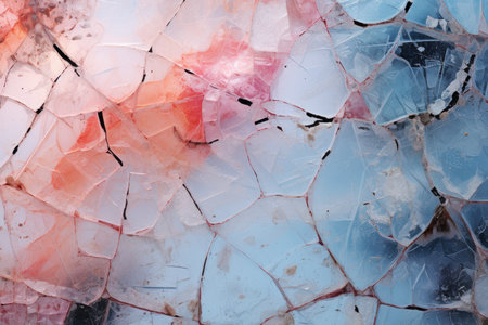 A vibrant and colorful shattered glass texture showcases an appealing arrangement of pink and blue hues, perfect for creative design projects and backgrounds.