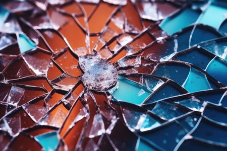 Discover the captivating beauty of cracked tempered glass in this abstract, Generative AI-created background.