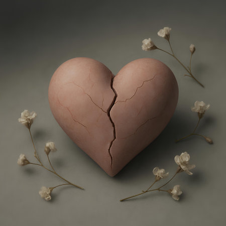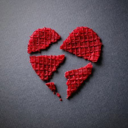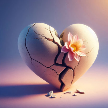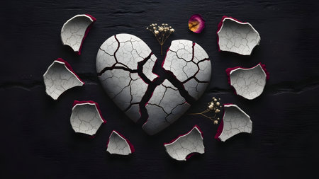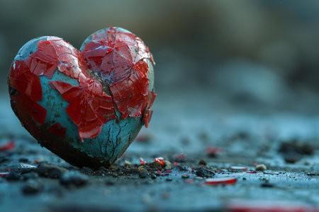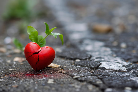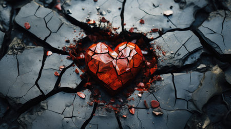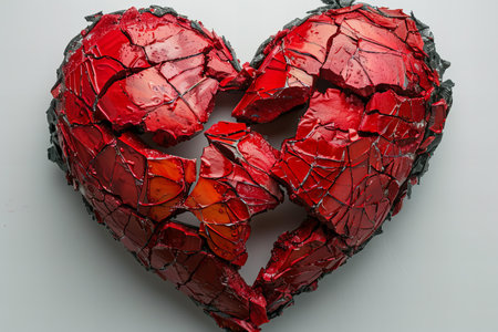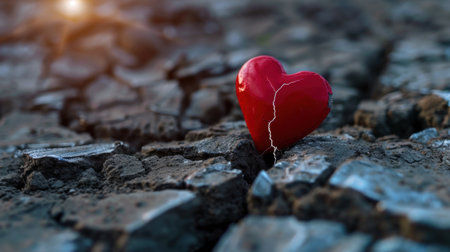 Broken red heart symbolizing the strength to heal and move on. Ideal for relationship advice blogs and emotional wellness campaigns