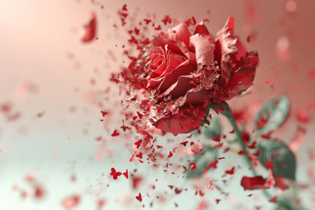 Dried rose and falling petal. Lost love and broken heart emotions concept