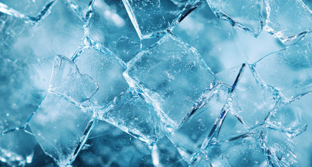 A mesmerizing close-up view of shimmering ice crystals showcases intricate patterns and glossy surfaces, creating a captivating blue abstract background.