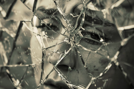Shattered glass reflecting a stressed expression, a moment of breaking point