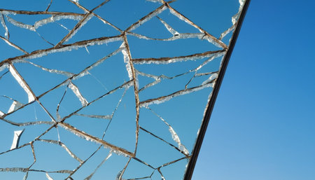 AI Generated. Shattered Glass with Sky and Sunlight Reflection
