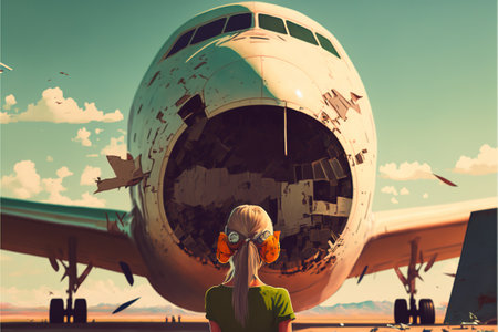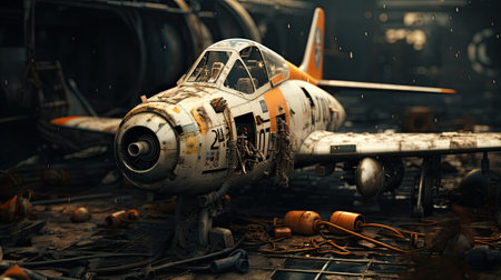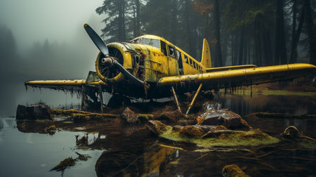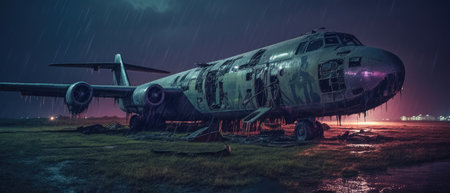 Dilapidated Ruined old airplane. Abandoned travel plane broken aviation. Generate Ai