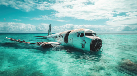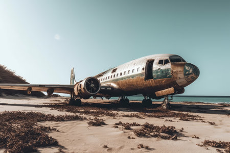 stock photo of Abandoned Aircraft in the beach photography Generated AI