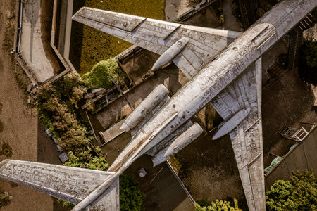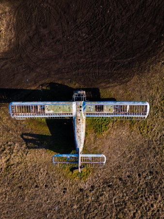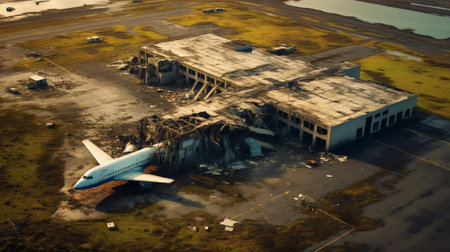 aerial view of decaying airplane fuselage, created with generative ai