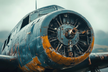 Close-up of an old abandoned plane, showing signs of age and weathering