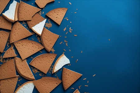 Baking Delights: Brown Paper Slices Dancing on a Deep Blue Canvas – A Captivating Top View Perspective
