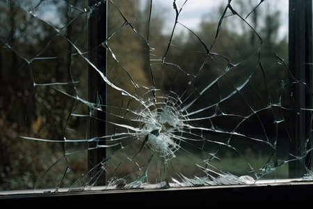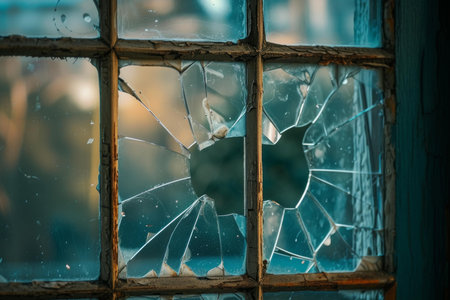 Accident cracked damaged broken house window glass
