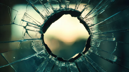 Broken window. Cracked glass with hole. Vandalism, destruction and accident concept.