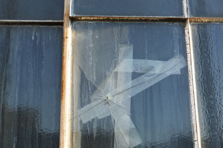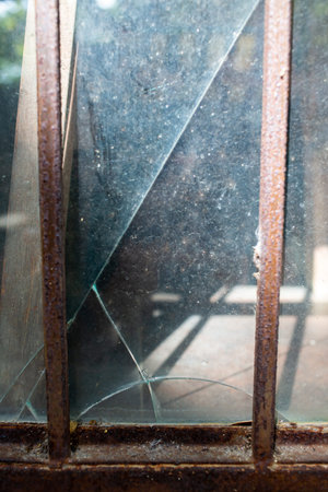 Broken glass on an old window