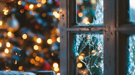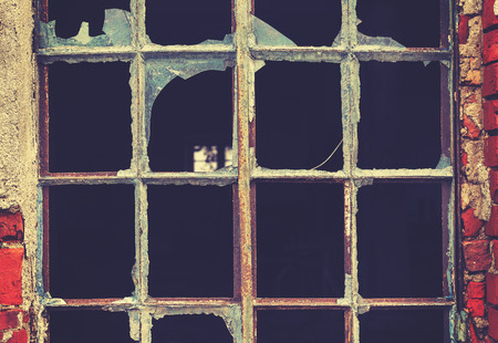 broken glass in an old window frame, filter