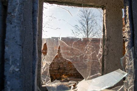 broken glass in the window. background sky, danger, devastation