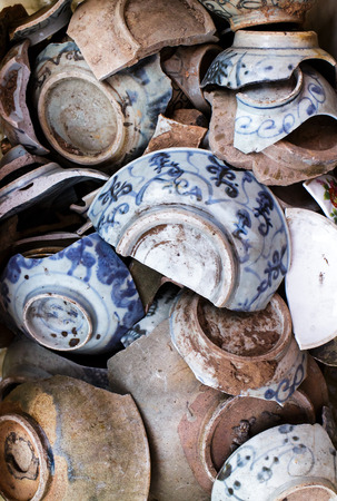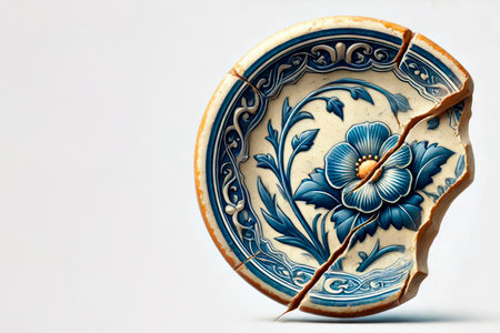 Ultra-detailed broken pottery texture, sharp ceramic shards with intricate hand-painted details.