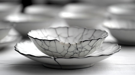Experience the beauty of a finely crafted ceramic dish showcasing delicate cracks and elegant design that enhance any dining experience or home decor.