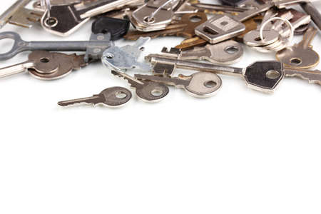 Lot of metal keys isolated on white