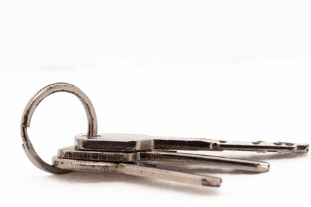 set of door keys on a white background. Safety concept,