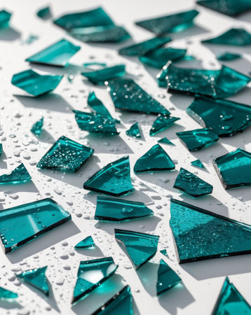 Beautiful arrangement of shattered glass fragments, showcasing vibrant colors and reflections. Ideal for abstract art themes or creative projects.