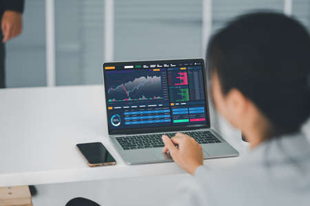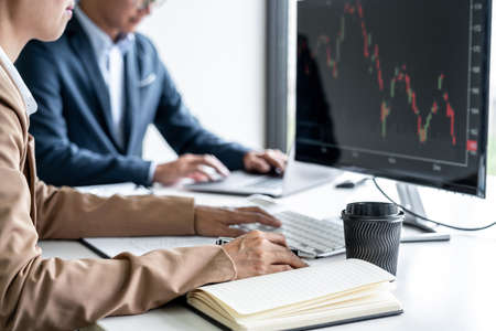 Business team investment working with computer and analysis graph stock market trading with stock chart data, business and technology concept.