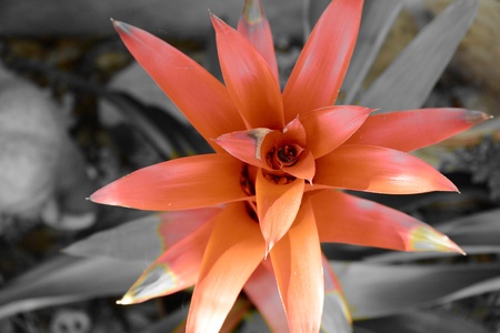 A Red Garden Tropical Plant stock photo, color selective in black and white background
