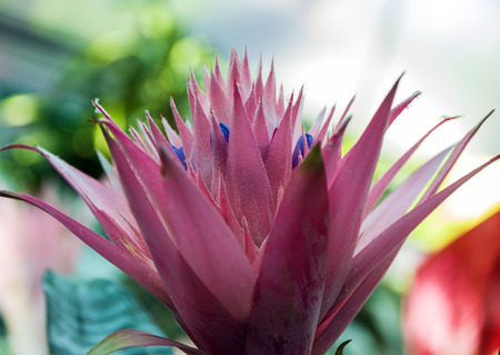 close-up of a beautiful flower Aechmea fulgens in the garden