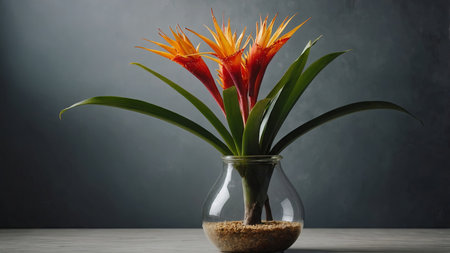 AI Generated. Guzmania lingulata displayed in a vase with copy space image