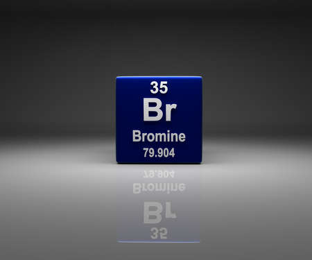 Cube with Bromine number 35 periodic table, 3d rendering