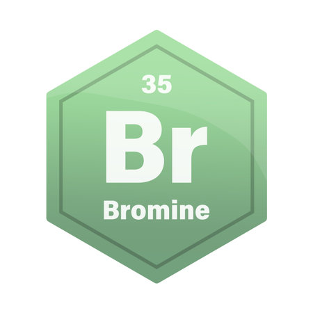 Bromine chemical element tile. Atomic number thirty five. BR sign Vector icon. Green olive gradient hexagon. EPS 10.
