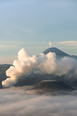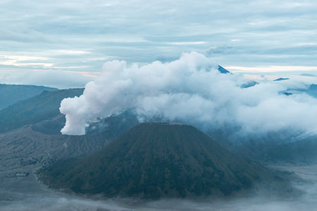 Mount bromo volcano in indonesia erupting with smoke and ash