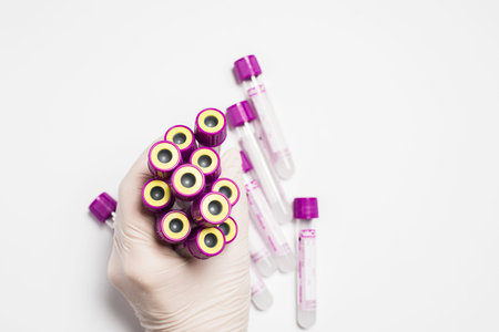 Blood samples for analysis of infected blood samples in a laboratory. Coronavirus test.