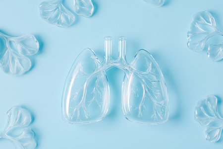Transparent glass lungs artwork on light blue background highlighting pulmonary structure and anatomy concept.