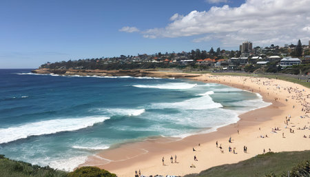 A beautiful view of Bondi beach on a sunny day in Sydney, Australia
