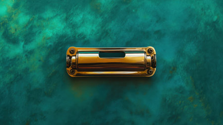 A stunning brass door viewer set against a vibrant turquoise background, highlighting its sleek design and fine craftsmanship for modern interiors.