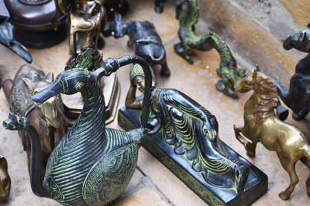 antique goods made of metal,stone and glass selling on roadside of jaisalmer