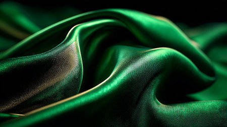 Emerald Green Silk Fabric Draped with Luxurious Folds and Subtle Gold Highlights