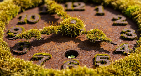 A close-up view of a collection of green and gold circular shapes arranged in a layered pattern