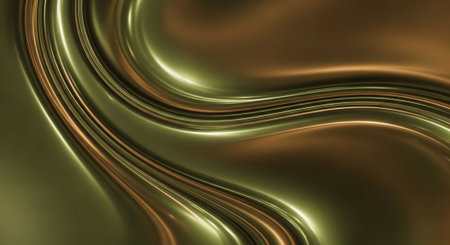A vibrant and dynamic abstract image featuring wavy metallic lines in shades of gold and brown