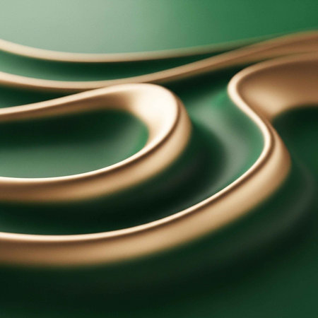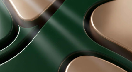 A close-up view of a modern green and gold abstract design with smooth curves and shiny metallic surfaces