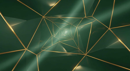 A stunning green and gold geometric pattern with intricate lines and shapes