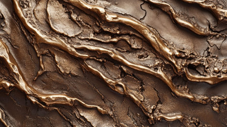This striking abstract image showcases a rich bronze texture with fluid patterns and contours, perfect for use in artistic designs and backgrounds.