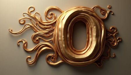 A stunning golden letter O is artistically surrounded by flowing, curly designs that evoke a sense of elegance and creativity. The intricate details and shimmering finish create a luxurious atmosphere, perfect for branding or artistic projects.