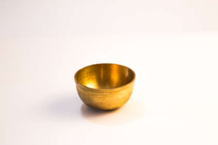 Empty Brass bowl or antique handi, isolated over white background