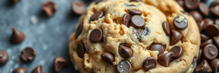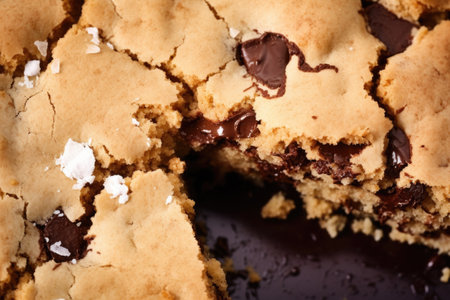 close-up texture shot of a cracked chocolate chip cookie, created with generative ai