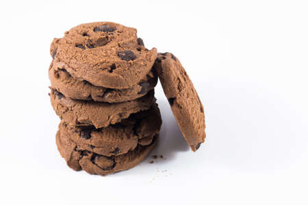 soft chocolate cookies bite closeup isolated on white background