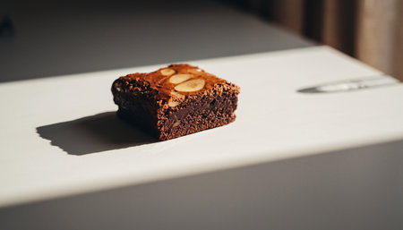 overhead shot of brownies on a parchment paper, created with generative ai