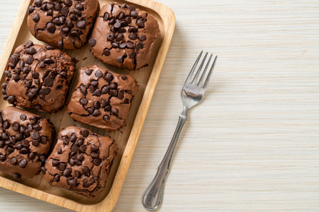 dark chocolate brownies with chocolate chips on top